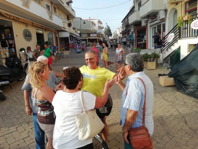 Ad attendere padre e figlio, legati anche dalla passione per la bici, non solo la loro famiglia e gli amici, ma anche numerosissimi curiosi, che hanno accolto i due temerari viaggiatori con un aperitivo rigorosamente calabrese, ai piedi del castello aragonese di Le Castella.