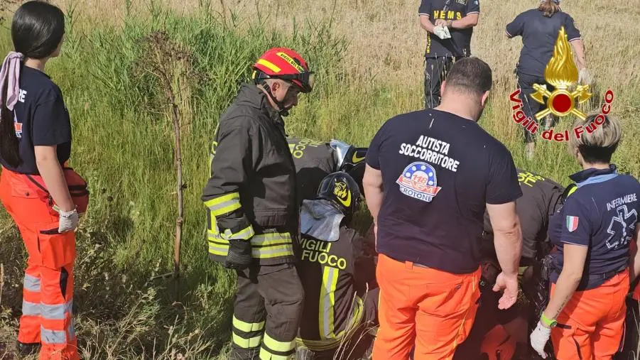 L’intervento dei vigili del fuoco è valso all’estrazione del ferito dall’autovettura, lo stesso affidato ai sanitari del 118 sul posto, ed alla messa in sicurezza della stessa e dei luoghi. Arrivato sul posto anche l’elisoccorso per il trasporto del ferito all’ospedale di Cosenza, per i rilievi del caso i Carabinieri di Crotone.