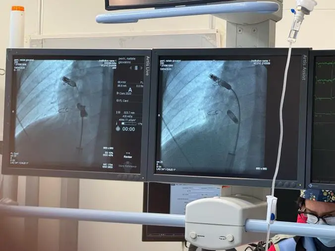 La singolarità dell’impianto, tra i primi in Italia, risiede nell’utilizzo di un dispositivo che non necessità di collegamenti tra l’apparecchio e il cuore, avvalendosi di due device (in atrio e ventricolo destro) che si avvitano direttamente all’interno del cuore e si avvicinano il più possibile alla stimolazione fisiologica cardiaca. Il brillante risultato della procedura è stato condiviso con la famiglia dell’assistito, appena dimesso.