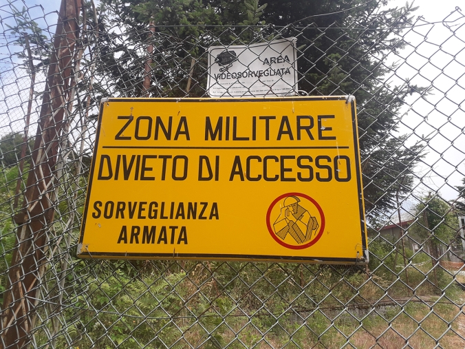 MONTE MANCUSO (CZ) – Arrivarci non è stato semplice. Venendo dal catanzarese, bisogna percorrere le strade montane tra i comuni di Gizzeria, di Falerna e di Nocera, che salgono su, in alto, verso il Monte Mancuso. Percorrendo i sentieri tortuosi, all’ombra dei pini – i cui aghi ricoprono quasi l’intero percorso – ci si rende conto immediatamente del perché costruire una base militare lassù. La luce del sole filtra difficilmente tra la vegetazione e incontrare qualcuno sul percorso è difficile. Proprio quando la convinzione era quella di aver sbagliato totalmente percorso, eccola! Ecco i cancelli della “IMMZ”, l’ex base NATO costruita nel 1960 dagli americani. Un centro nevralgico per le comunicazioni militari, inserito nella rete Ace-High Network, che controllava tutte le stazioni di trasmissione remota del confine orientale dell’area Atlantica. Sulla recinzione i cartelli con l’avvertimento: “Zona militare. Divieto d’accesso. Sorveglianza armata”. Spenta la macchina e raggiunto il cancello principale, si legge su una targa: “46° reggimento trasmissioni”.