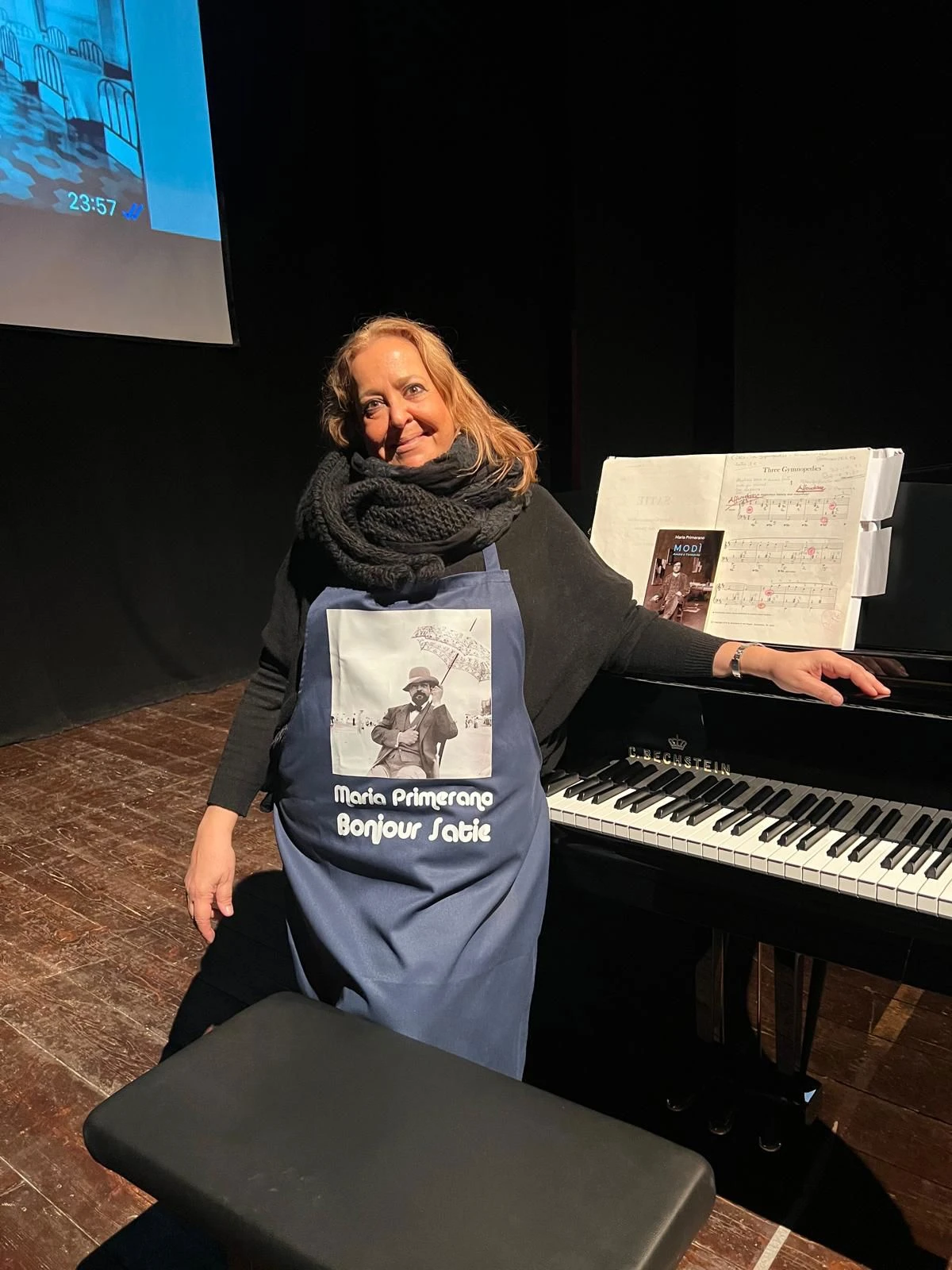 Così descrive il bellissimo concerto tenuto da Maria PRIMERANO, cardiologa, pianista, scrittrice, Roberto Ferretti, ideatore de LE MARCHE IN VALIGIA, psicologo, studioso di cucina contadina, erbe di campo, turismo relazionale. Il concerto, nel bellissimo teatro di Petritoli, un teatro dell’Ottocento, un piccolo gioiello che le Marche vantano, ha visto la Primerano suonare un meraviglioso Bechstein e proporre le musiche evanescenti e delicatissime di Erik Satie, tra l’altro, nel centenario della morte.