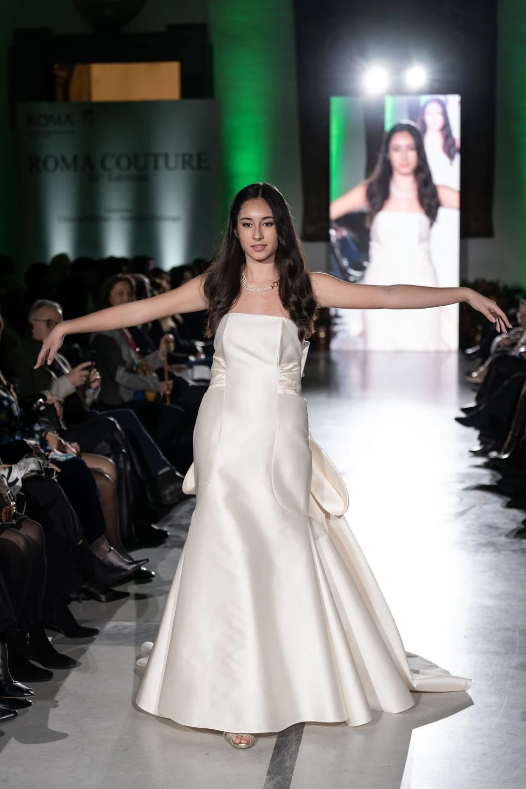 01 aprile 2026 08:08E' un dialogo tra innovazione e tradizione. Artigianalità guardando alla sostenibilità, materiali nobili e silhouette fluide. A Roma in Campidoglio, nella Sala della Protomoteca, alla III^ Edizione di Roma Couture, iniziativa dedicata alla valorizzazione e alla promozione dell’Alta Moda italiana, la stilista calabrese Azzurra Di Lorenzo conquista tutti. Passerelle, a parte.