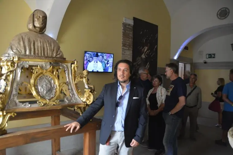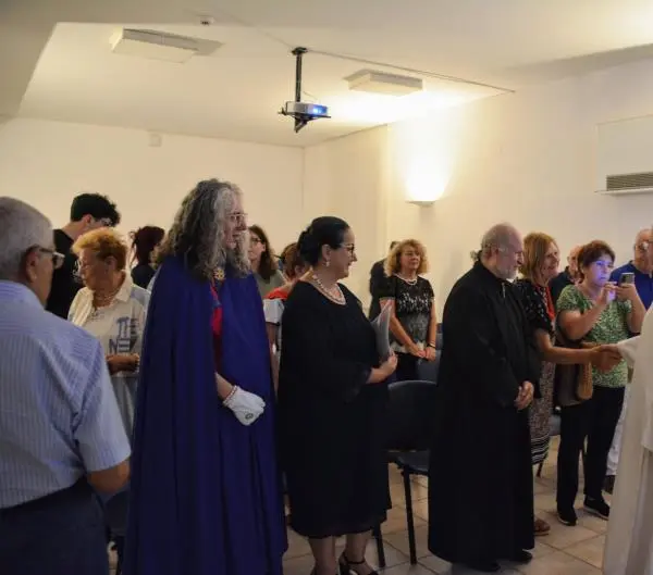 La Delegazione, composta da trenta persone e formata da vari Ordini Cavallereschi racchiusi sotto lo stemma ANIOC, ha atteso in una sala del Museo della Certosa l’udienza con il Priore, accolto dalla sig.ra Michelina De Franco, socia benemerita, indossando il Mantello dell’ Associazione e portavoce della delegazione provinciale di Crotone. Dopo il breve saluto la delegata Dama Nadia Montirosso ha presentato l’associazione portando i saluti del segretario nazionale il Conte Maurizio Monzani e del Cooordinatore regionale Cav. Uff. Giuseppe Crea, il quale si scusava dell’assenza dovuta ad impegni familiari inderogabili.
