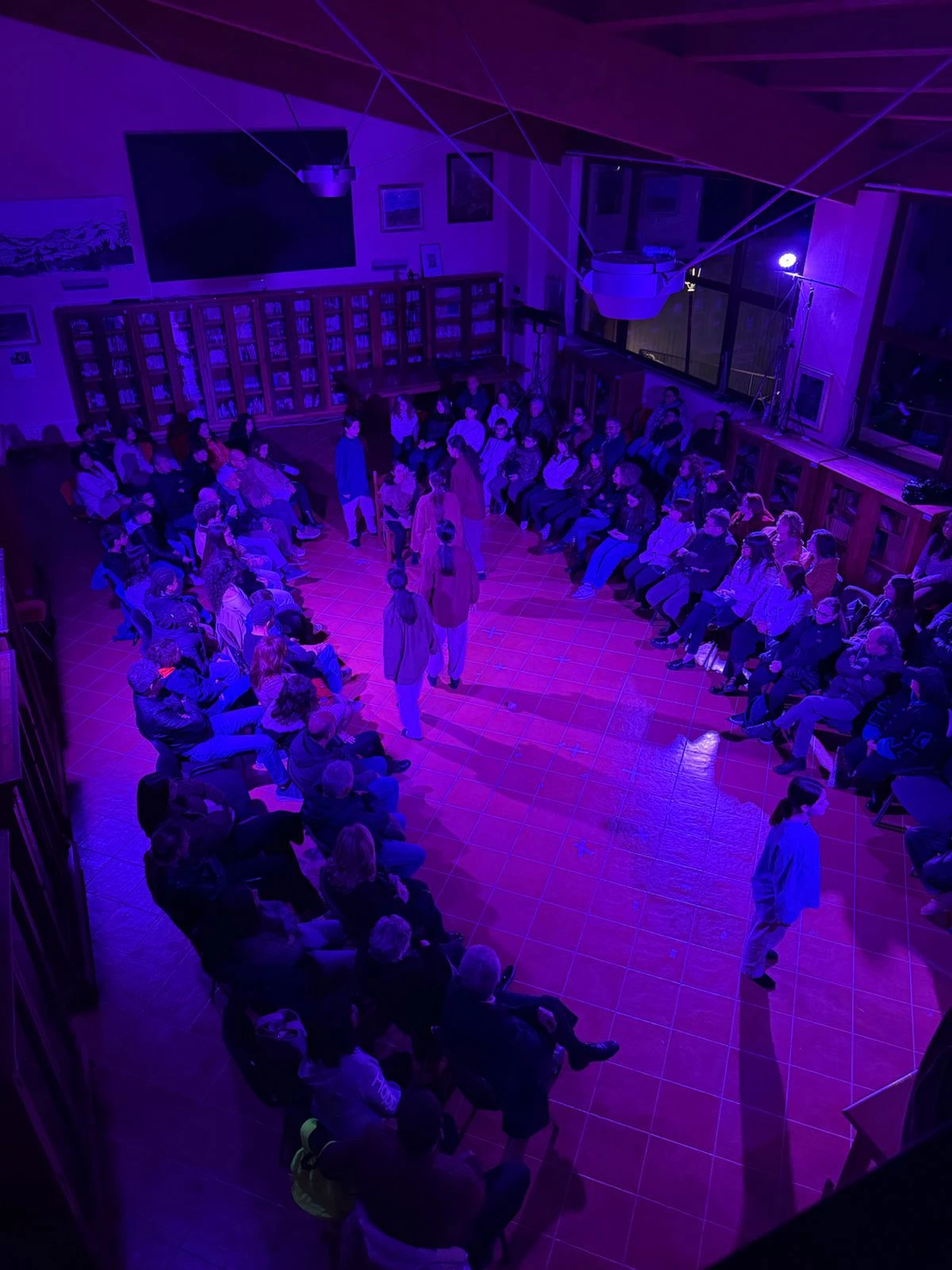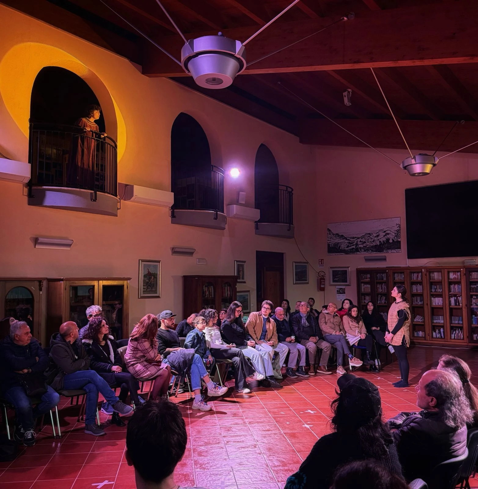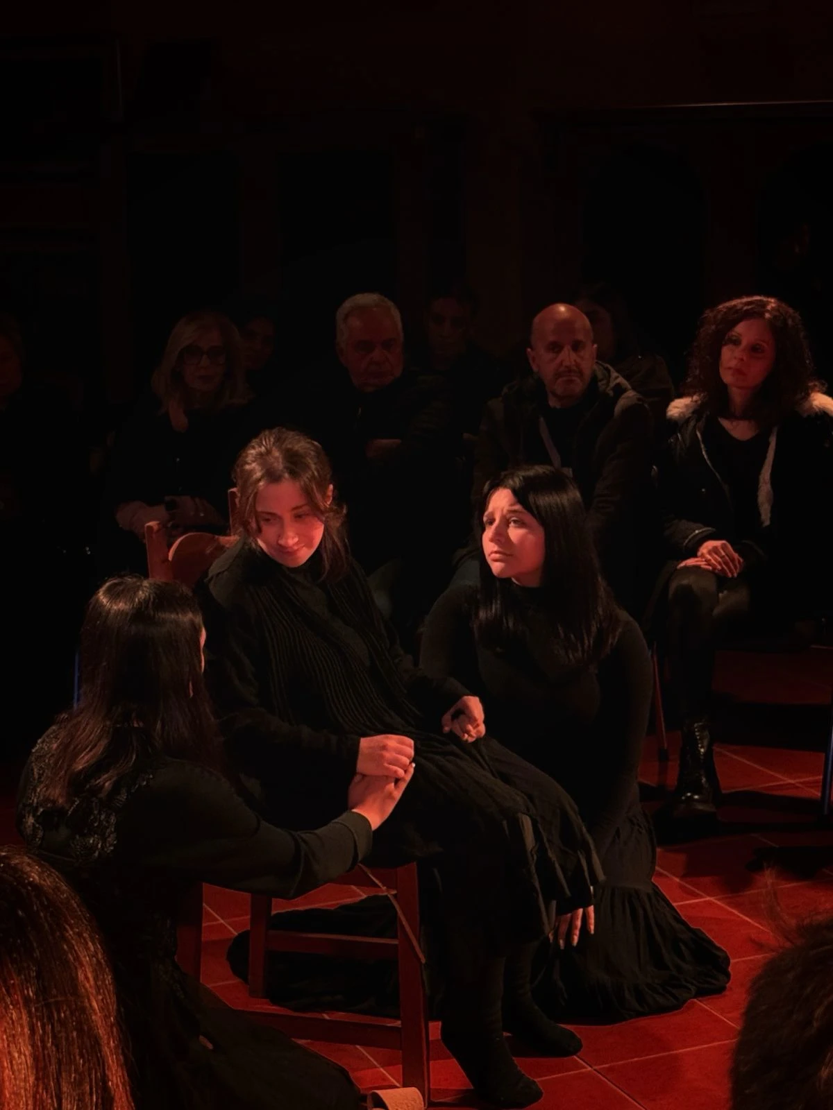 Un pubblico numeroso ha riempito lo spazio scenico, disposto in una forma avvolgente che abbracciava attori e azione, trasformando la rappresentazione in un'esperienza condivisa immersiva, quasi rituale. Un silenzio attento e carico di ascolto ha accompagnato ogni momento dello spettacolo, fino al lungo e sentito applauso finale, culminato con il pubblico in piedi.