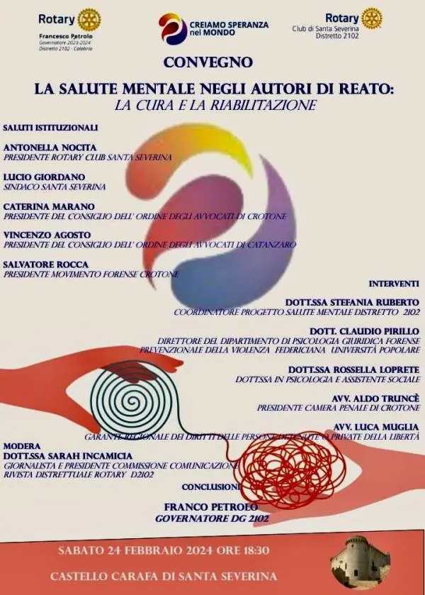 All’evento, che inizierà alle ore 10:30, sarà presente il Dirigente del Liceo Classico Dott.ssa Antonietta Ferrazzo, il Presidente del Rotary Club Santa Severina Avv. Antonella Nocita e il Presidente del Consiglio dell’Ordine degli Avvocati di Crotone Avv. Caterina Marano, Presidente del Movimento Forense di Crotone, nonché Consigliere Ordine degli Avvocati di Crotone L’Avv. Salvatore Rocca, ed inoltre il Direttore dell’Università “Niccolò Cusano” sede di Crotone Dott. Cav. Leonardo Maria Rocca, il Componente C.P.O. dell’Ordine degli Avvocati di Crotone Avv. Pietro Durante e il Componente del Direttivo del Movimento Forense di Crotone Avv. Lorena Corasaniti.
