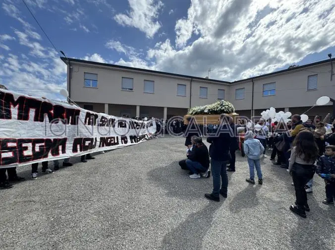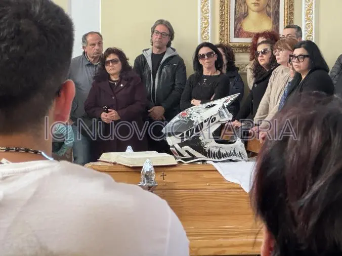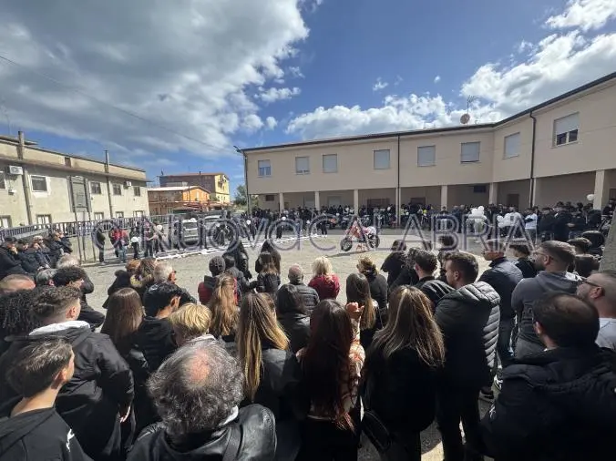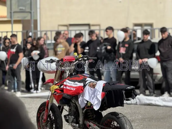 Una folla immensa ha riempito la Chiesa di Sant’Anna nel quartiere Fortuna della città. L’edificio non è riuscito a contenere quanti hanno voluto stringersi al dolore della famiglia, unita ai primi banchi della chiesa con lo sguardo fisso su quella bara sopra la quale era adagiata una maglietta bianca ed il casco che il giovane indossava in sella alla sua Crf 450 rossa, la stessa posta al centro del piazzale della chiesa dove radunati vi erano centinaia di ragazzi, amici, compagni e conoscenti, con lo sguardo perso e l’animo affranto. Come la sua, decine di altre moto sono state portate nel piazzale e quando la bara ha raggiunto l’esterno della piazza, un rombo corale ha sovrastato il pianto incessante dei presenti.