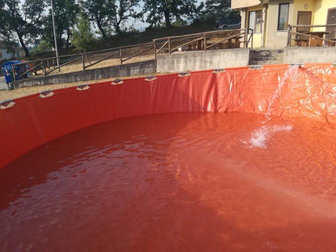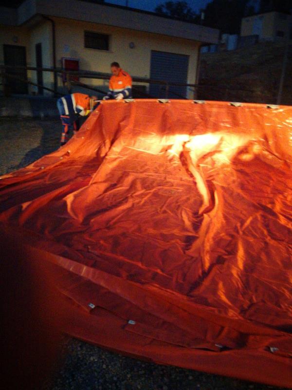 La vasca è stata costantemente riempita attraverso l'uso di idranti presenti nell'area ma soprattutto con il supporto delle autobotti dei vigili del fuoco che tra l'altro hanno rifornito anche i mezzi AIB che stavano operando sull'incendio.