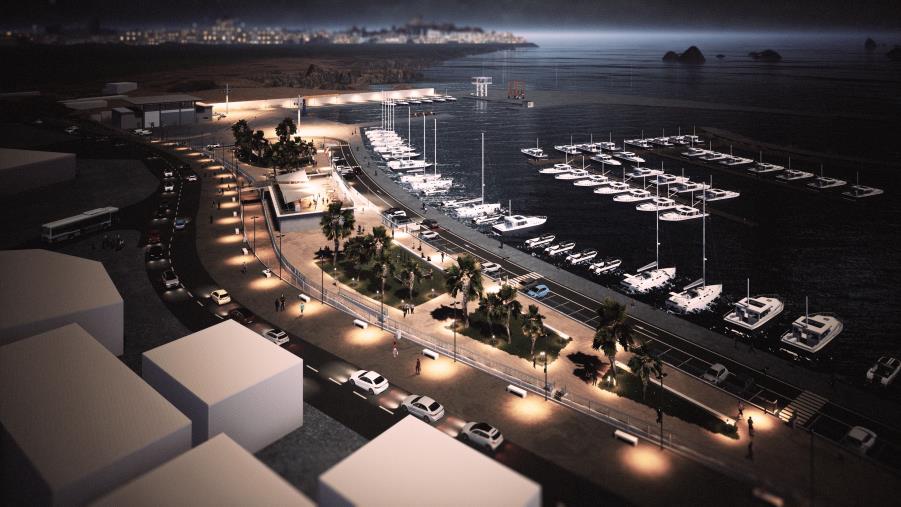 LE OPERE PRINCIPALI Nello specifico, fra gli interventi principali, sono previsti la costruzione di un circolo nautico; il posizionamento di una gru a servizio del Porto; una torre di controllo; un molo e una darsena tecnica per i pescherecci corredata di “travel lift” con portata fino a 50 tonnellate; un capannone per il rimessaggio delle barche; una migliore configurazione degli ormeggi all’interno del Porto; quattro nuovi pontili rettilinei e uno ad arco per un totale di 10 pontili di cui 9 galleggianti e uno a emiciclo; l’inserimento di colonnine di alimentazione idrica/elettrica lungo i pontili galleggianti e un’area cantieristica distinta in due piazzali.