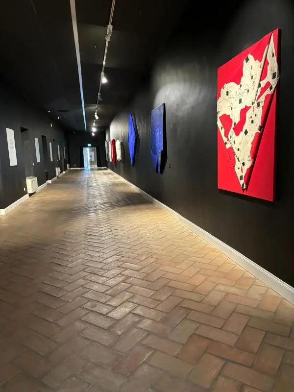 Lungo le pareti della Sala Nera, in un’atmosfera di luci e penombre, sette opere significative esprimono il messaggio che Cesare Berlingeri ha affidato a ciascuna di esse nel voler stabilire con l’osservatore un contatto, non verbale, ma per questo non meno significativo e intenso. Ad offrire una visione completa della ricerca artistica e dell’evoluzione del suo processo creativo, in modo speculare, l’allestimento della mostra offre una serie di suoi pensieri, non solo da leggere, ma anche da ascoltare dalla sua viva e vibrante voce, inquadrando il QR code che li accompagna.
