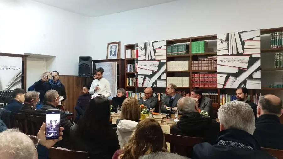 “Grande nel nome e nei fatti” ha esordito con queste parole Franco Cimino, nel suo intervento in memoria di un amico maestro di politica, di professione e di vita. “Saverio Grande, il maestro in tutto, é stato un fervente e coerente democratico e democratico-cristiano. Uomo e politico e giornalista, onesto e sincero, intellettuale coraggioso e fine”.