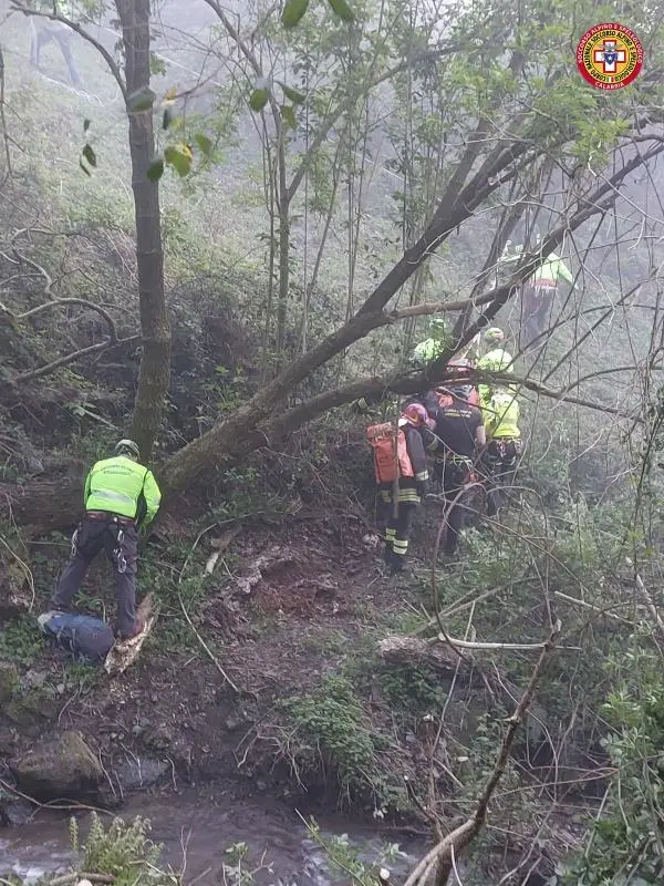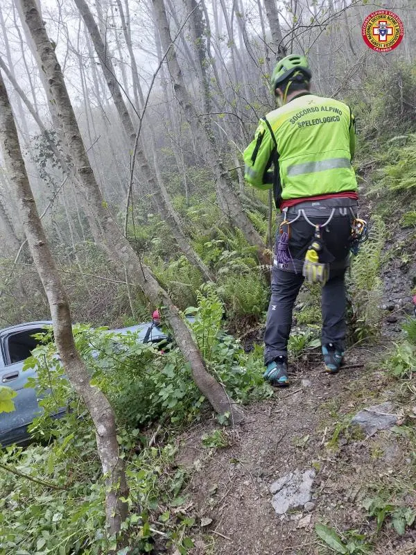 L’uomo, che era alla guida della sua automobile, è precipitato all’interno di un canalone con presenza di acqua, per circa 70 metri.