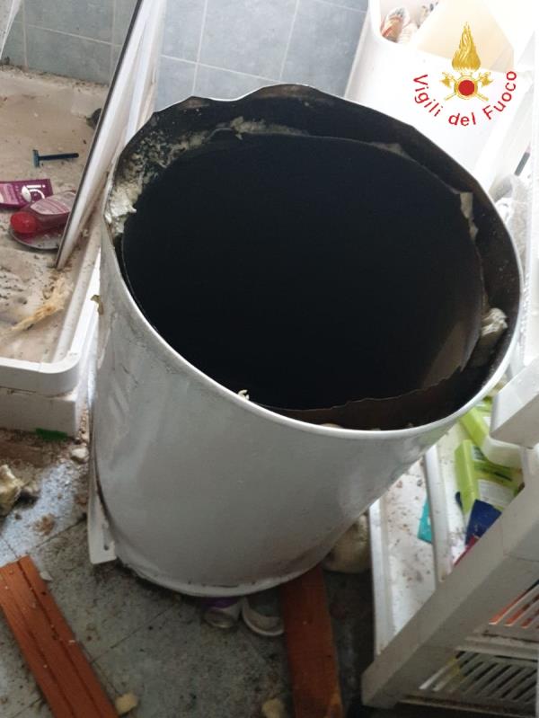 Lo scoppio, avvenuto nel tardo pomeriggio di ieri, ha danneggiato l'intero locale bagno ed ha prodotto marcate lesioni sulle pareti divisorie all'interno dell'abitazione con cedimento di piccole parti di laterizi.