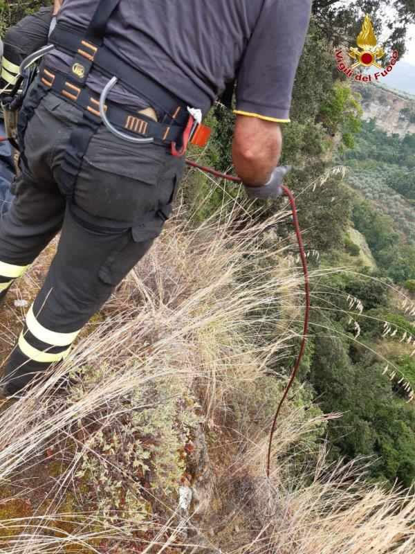 Sul posto anche il Nucleo Saf - Speleo-alpino fluviale - dei vigili del fuoco considerato che il cadavere, in stato di decomposizione, è in burrone.